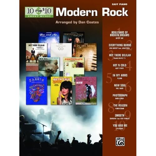 10 for 10 Sheet Music: Modern Rock is loaded with great songs for keyboardists, pianists, and singers who love the rock of the 1990s and beyond.Titles: *Boulevard of Broken Dreams (Green Day)*Everything Burns (Ben Moody feat. Anastacia)*Hey There Delilah (Plain White T’s)*Hot N Cold (Katy Perry)*In My Arms (Plumb)*New Soul (Yael Naim)*Photograph (Nickelback)*Smooth (Santana feat. Rob Thomas)*The Reason (Hoobastank)*You and Me (Lifehouse).
