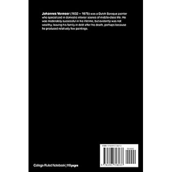 Art Journal - Johannes Vermeer Cover Premium College Ruled Notebook Matte Soft CoverSize - 6"x9" 110 Pages